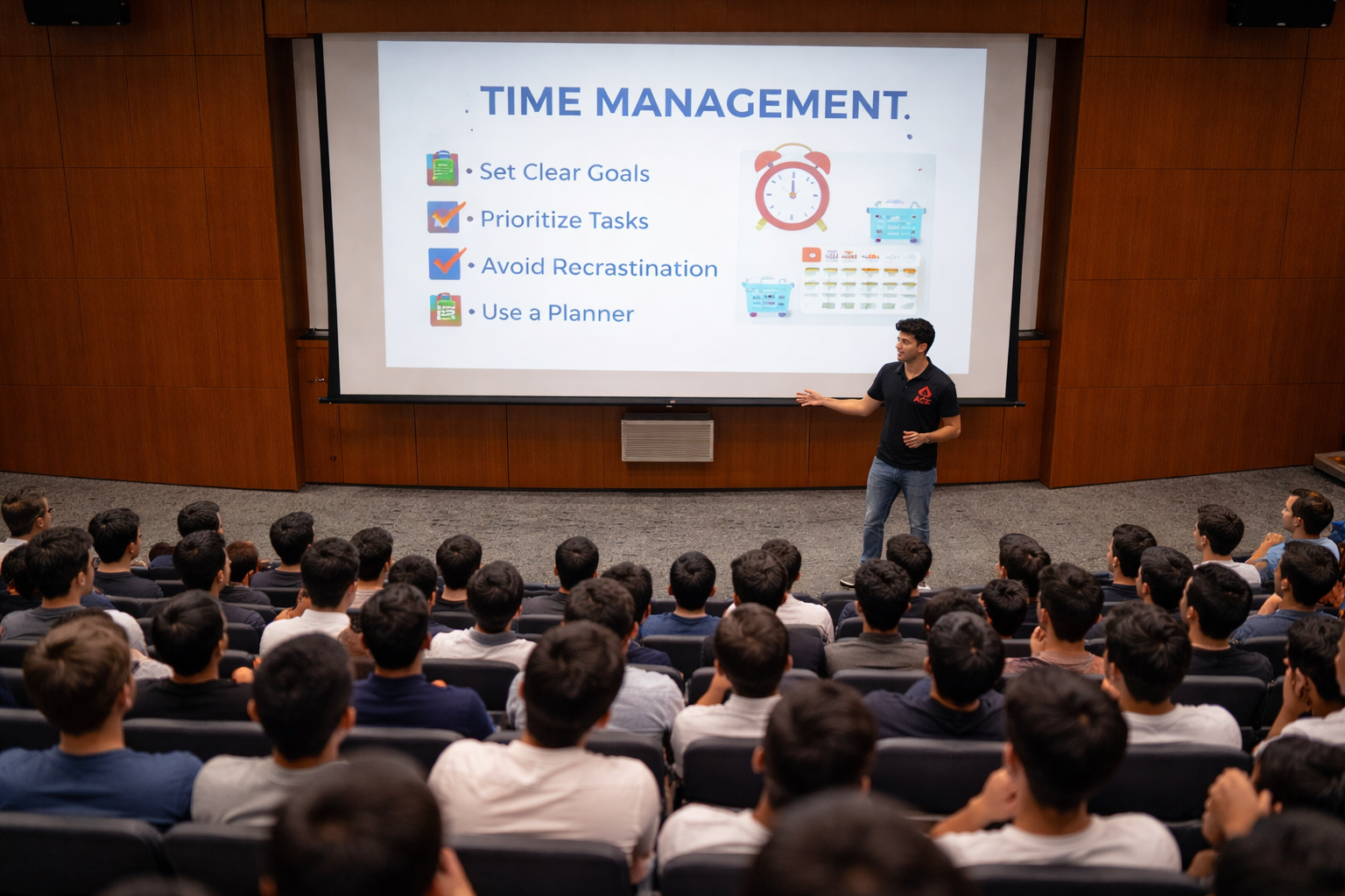 A structured session built around practical frameworks students can apply immediately.